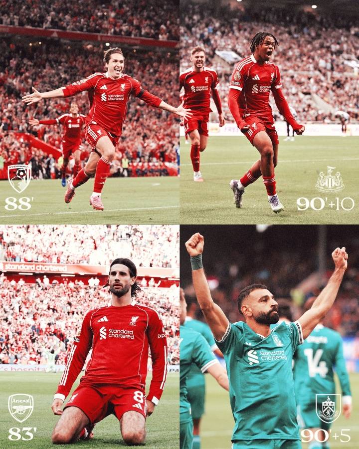 本赛季利物浦似乎开启了绝杀模式。在范戴克欧冠绝杀前,球队已经在英超赛场四次上演终场好戏:首轮对阵伯恩茅斯,小基耶萨第88分钟打破僵局,萨拉赫补时阶段锁定胜局;次轮客战纽卡斯尔,替补奇兵恩古莫哈在第100分钟完成读秒绝杀;第三轮与阿森纳的强强对话中,新援索博斯洛伊第83分钟打入制胜球;上轮联赛面对伯恩利,又是萨拉赫在95分钟挺身而出。短短一个月内,红军已经五次在比赛尾声阶段决定胜负。